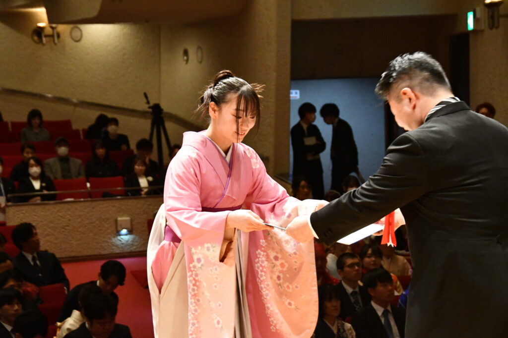 小林学部長より学位記を授与される歯学部の坂本亜弥さん